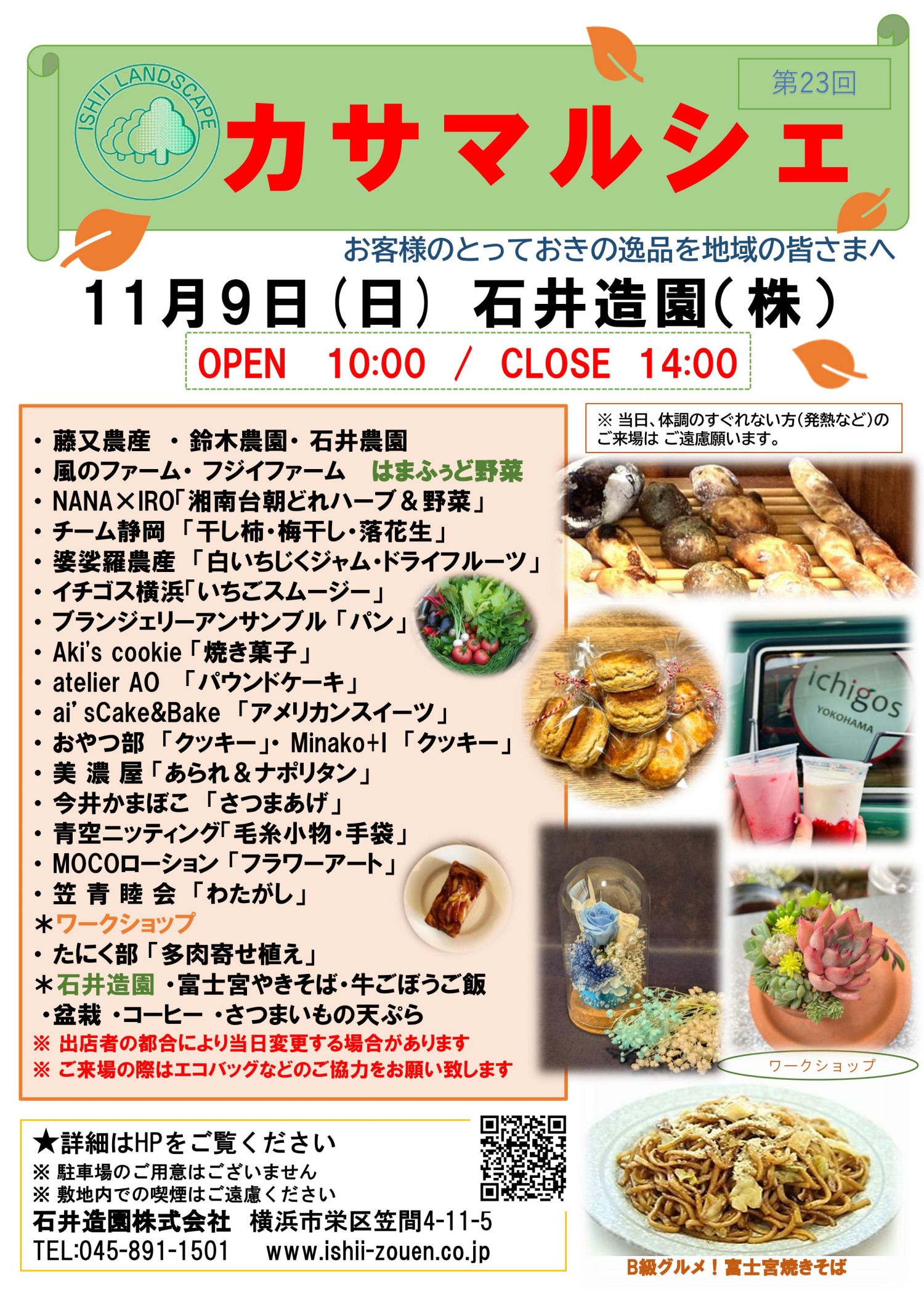 11/9(日) 第23回カサマルシェ 開催が決まりました!